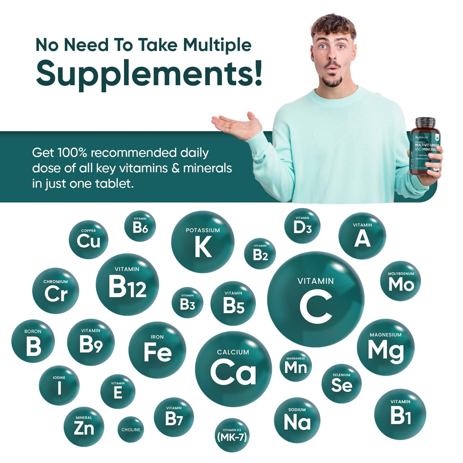 - 100% NRV in One Tablet: Delivers 100% of the recommended daily value for 19 key nutrients, including Vitamin D3 for bones and Zinc for skin, hair, and nails.