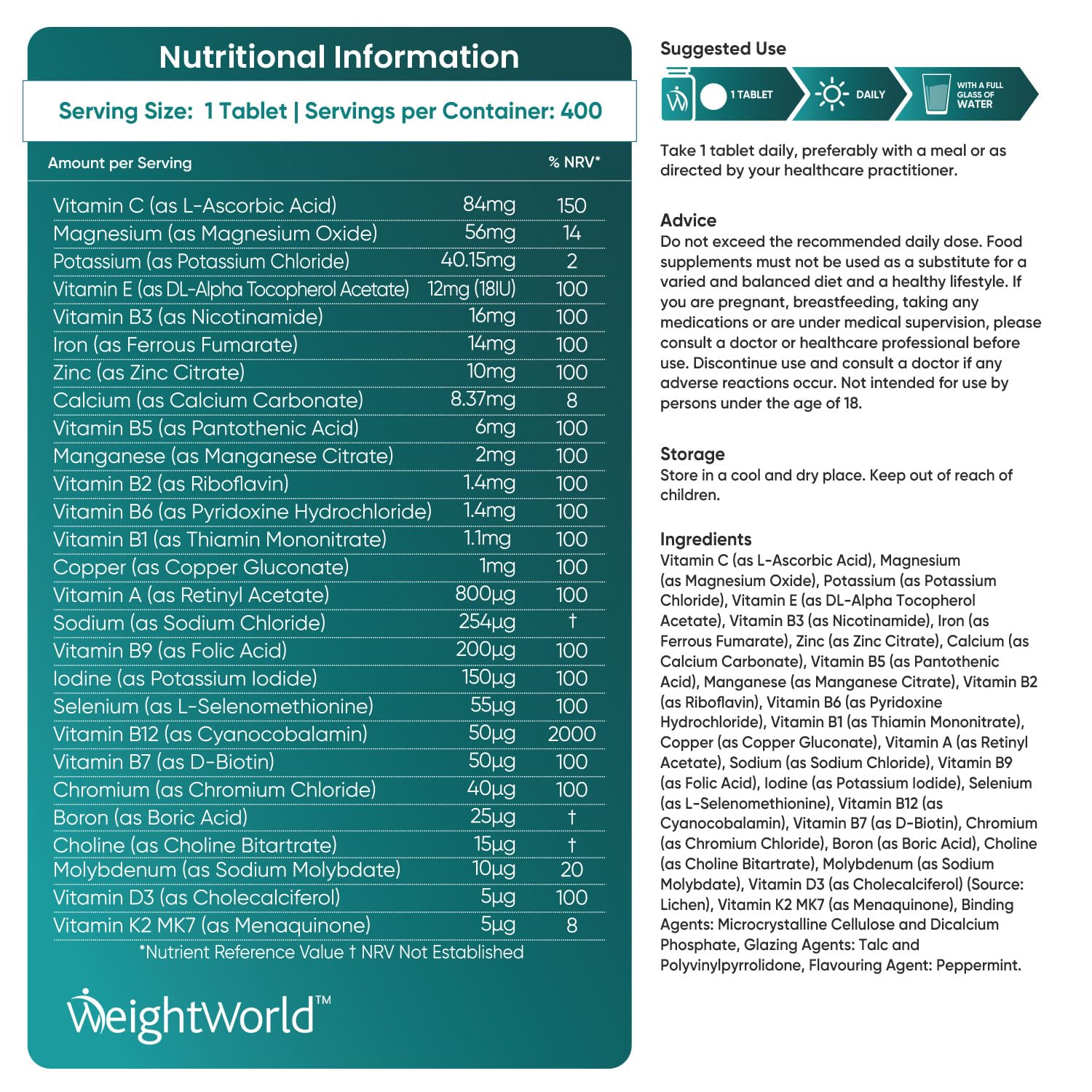 -Multivitamin Tablets for Men & Women | 400Tablets (1+ Year Supply) 1 Tablet a Day -