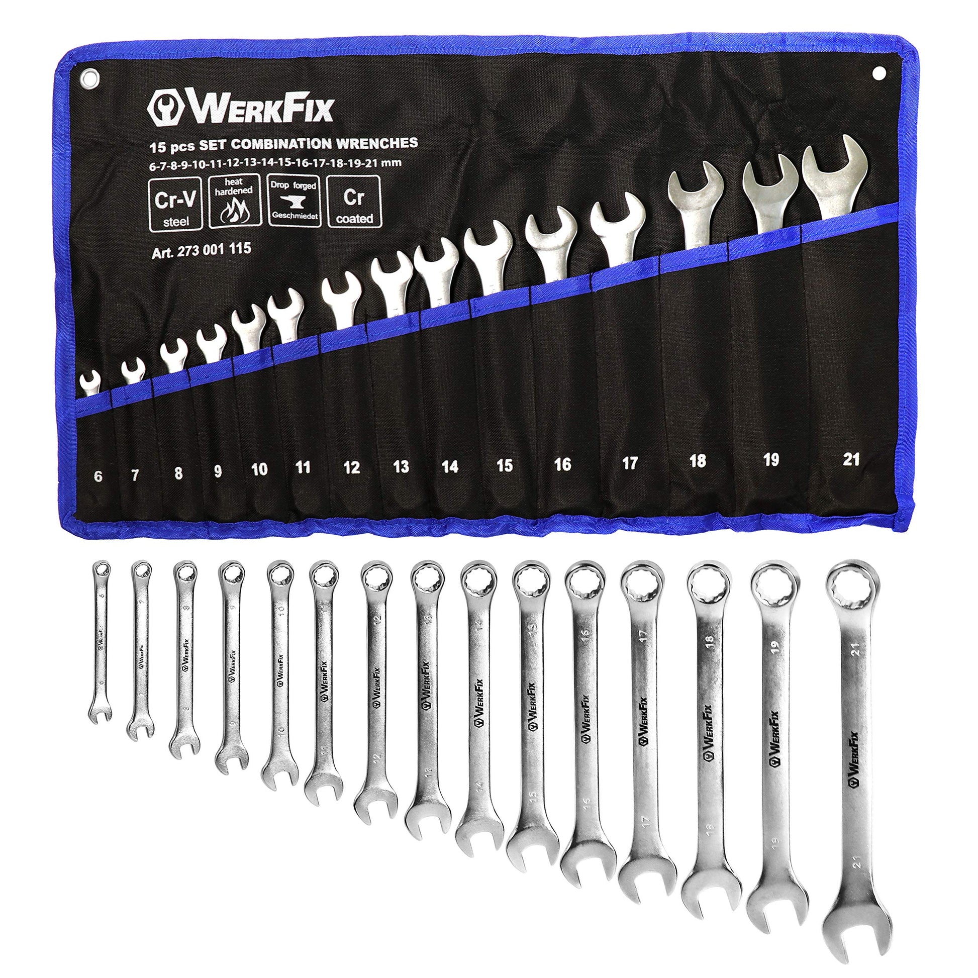 - WerkFix Combination Spanner Set 15-Piece 6-21 mm