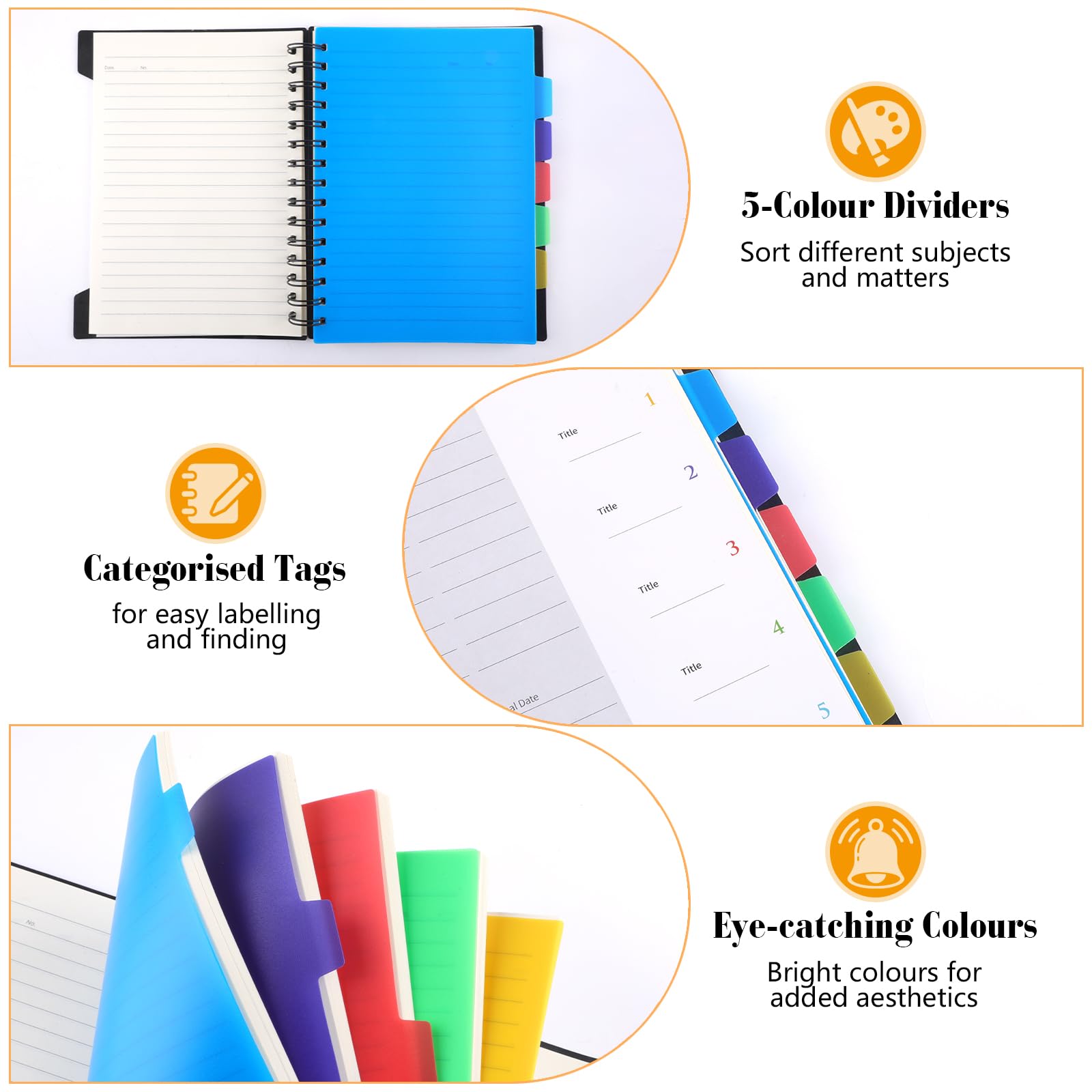 - Top Pick by Top Dad: This Weysoo A5 Spiral Notebook with Dividers helps keep your notes, schedules, and thoughts well-organized with 5 different coloured dividers.