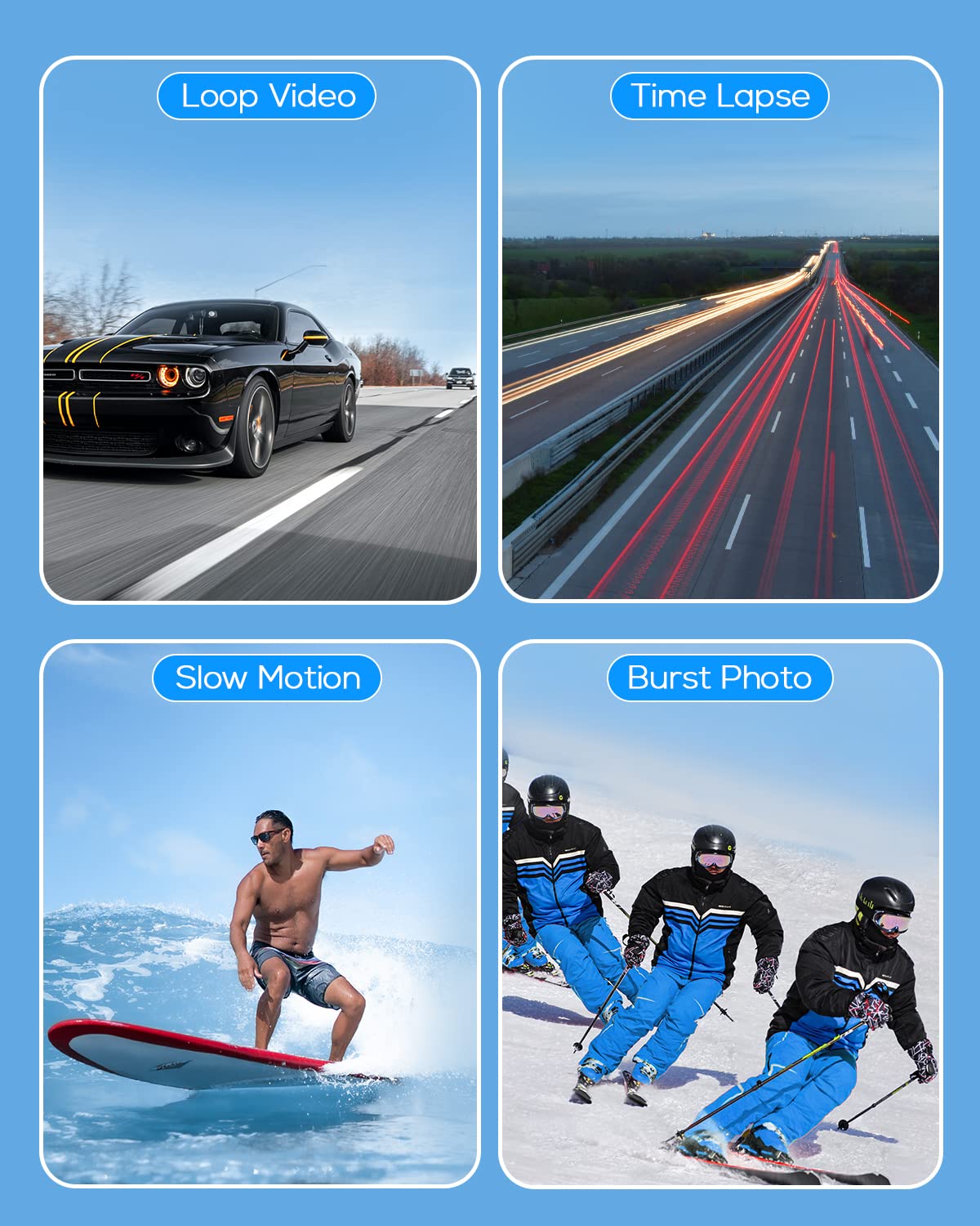 - Multiple Recording Modes: Whether you're taking selfies, shooting time-lapse, or recording slow-motion, the GA100 supports various recording modes, including loop recording, continuous recording, and auto mode, catering to every type of shooting need.