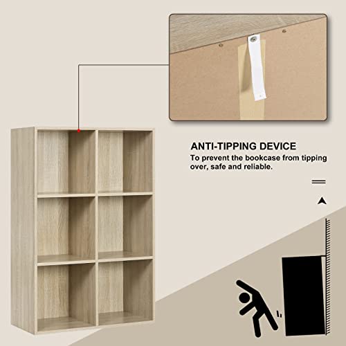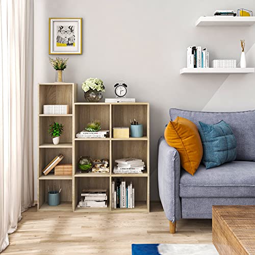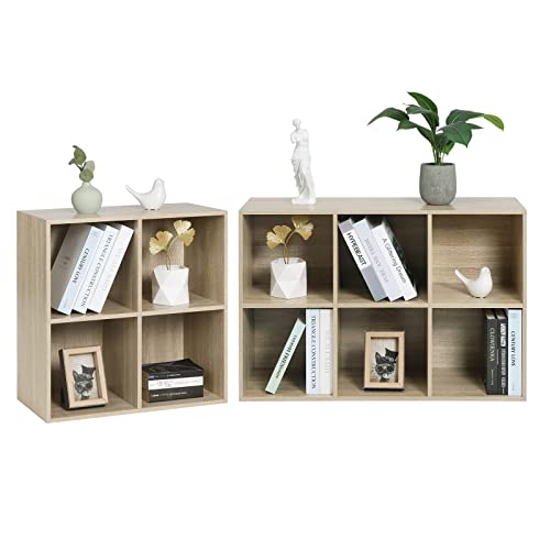 - WOLTU Bookcase, Oak Book Shelf 6 Storage Cubes Unit, Freestanding Bookcases for Living Room, Bedroom