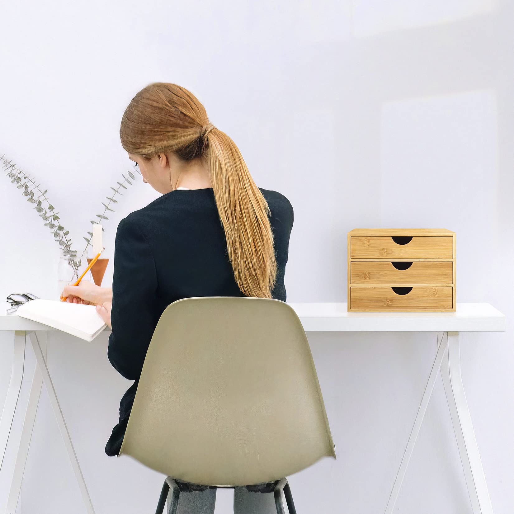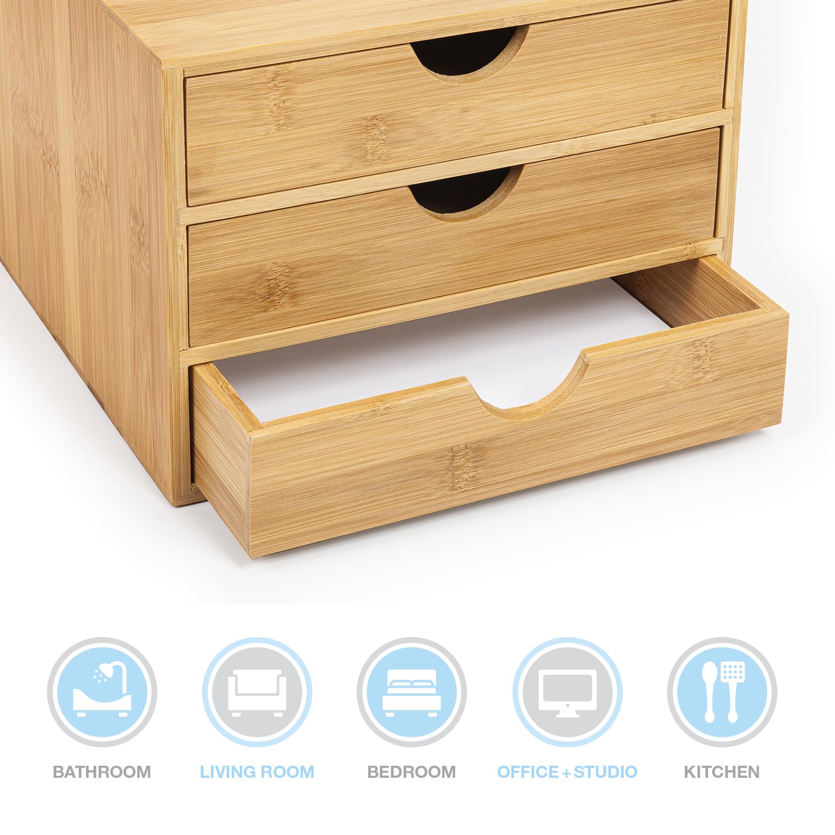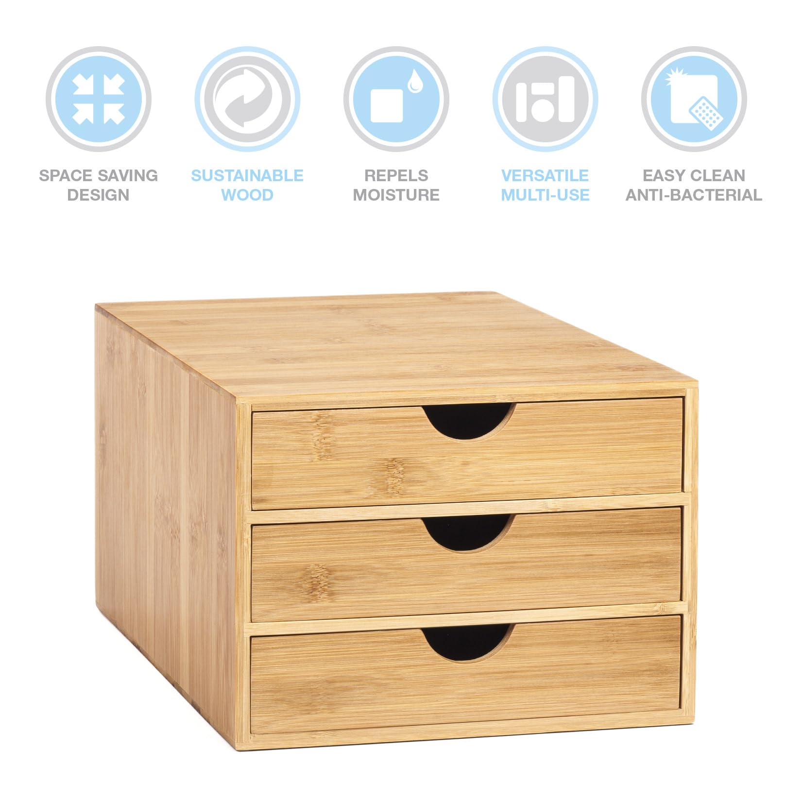- Woodluv 3 Drawer Bamboo Home Office Desktop Tidy A4 Sturdy Stationary Storage Organiser Unit, W25 X D33 X H18.5cm
