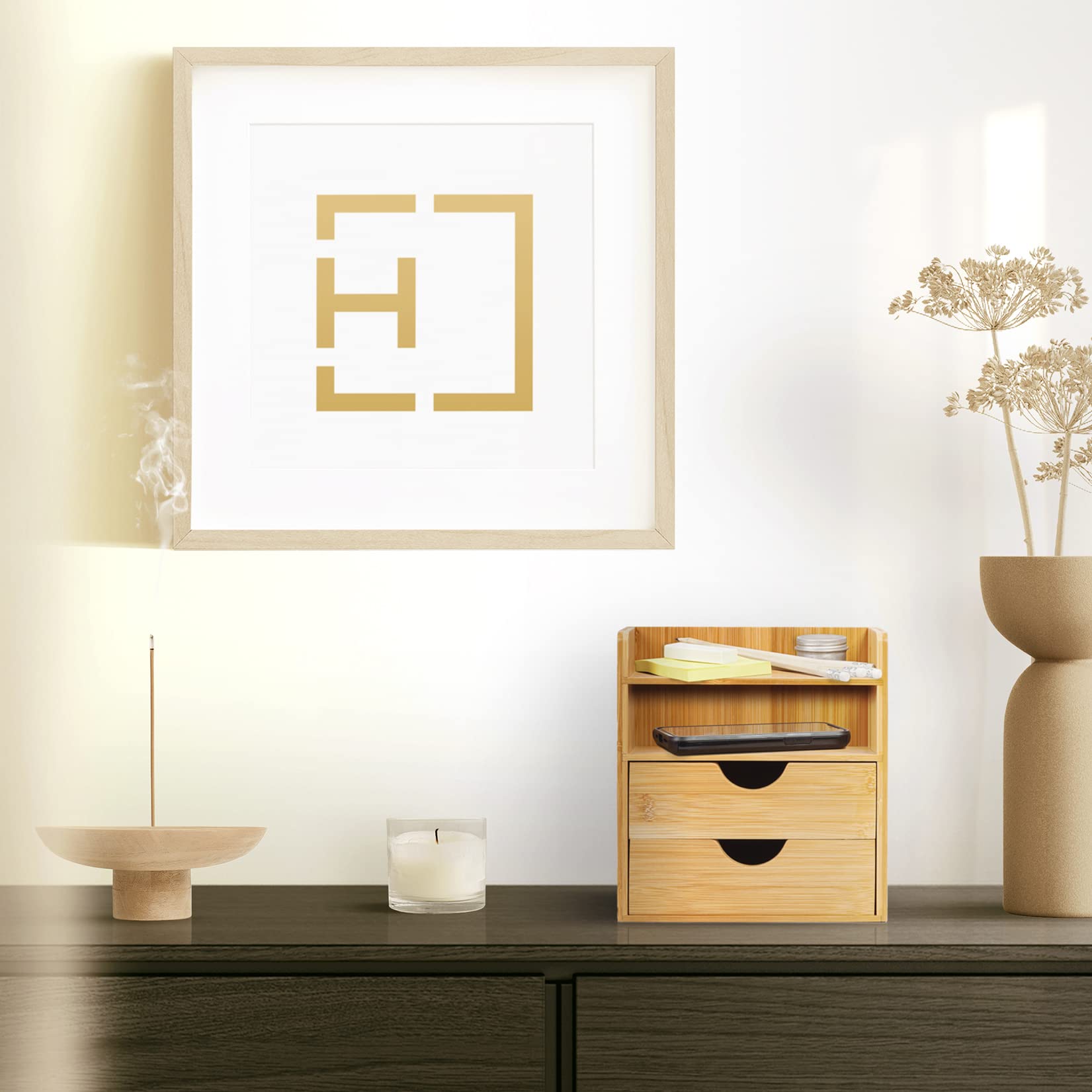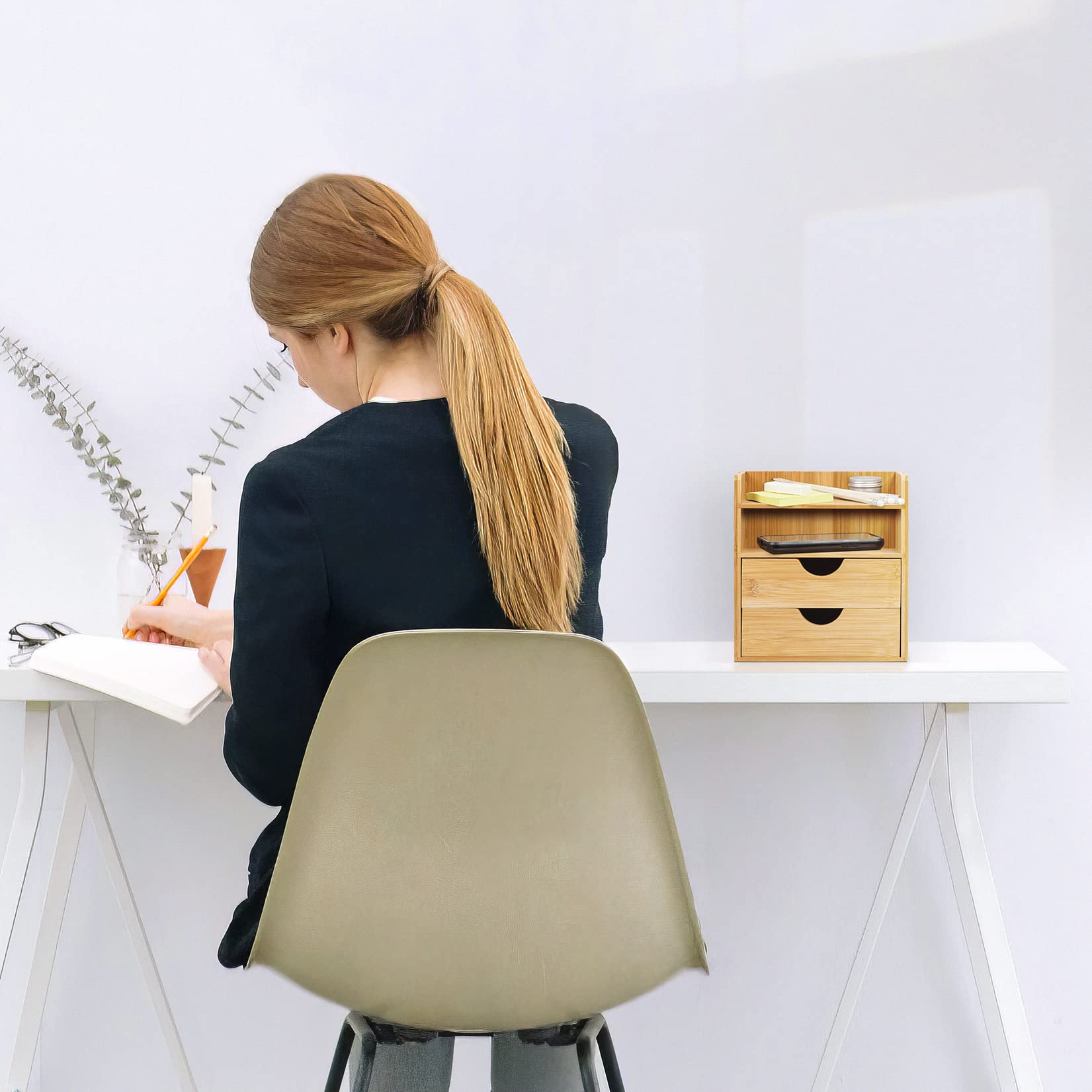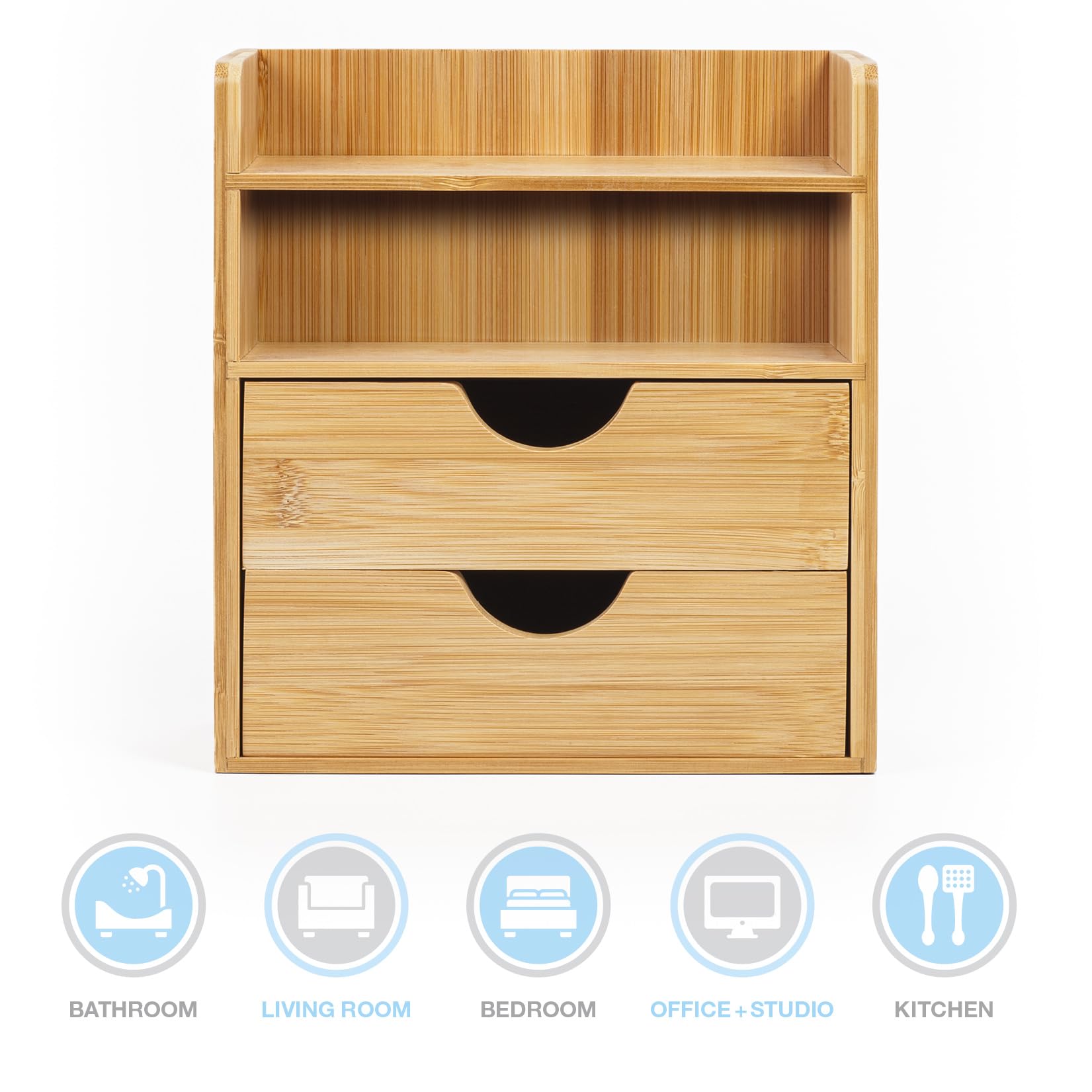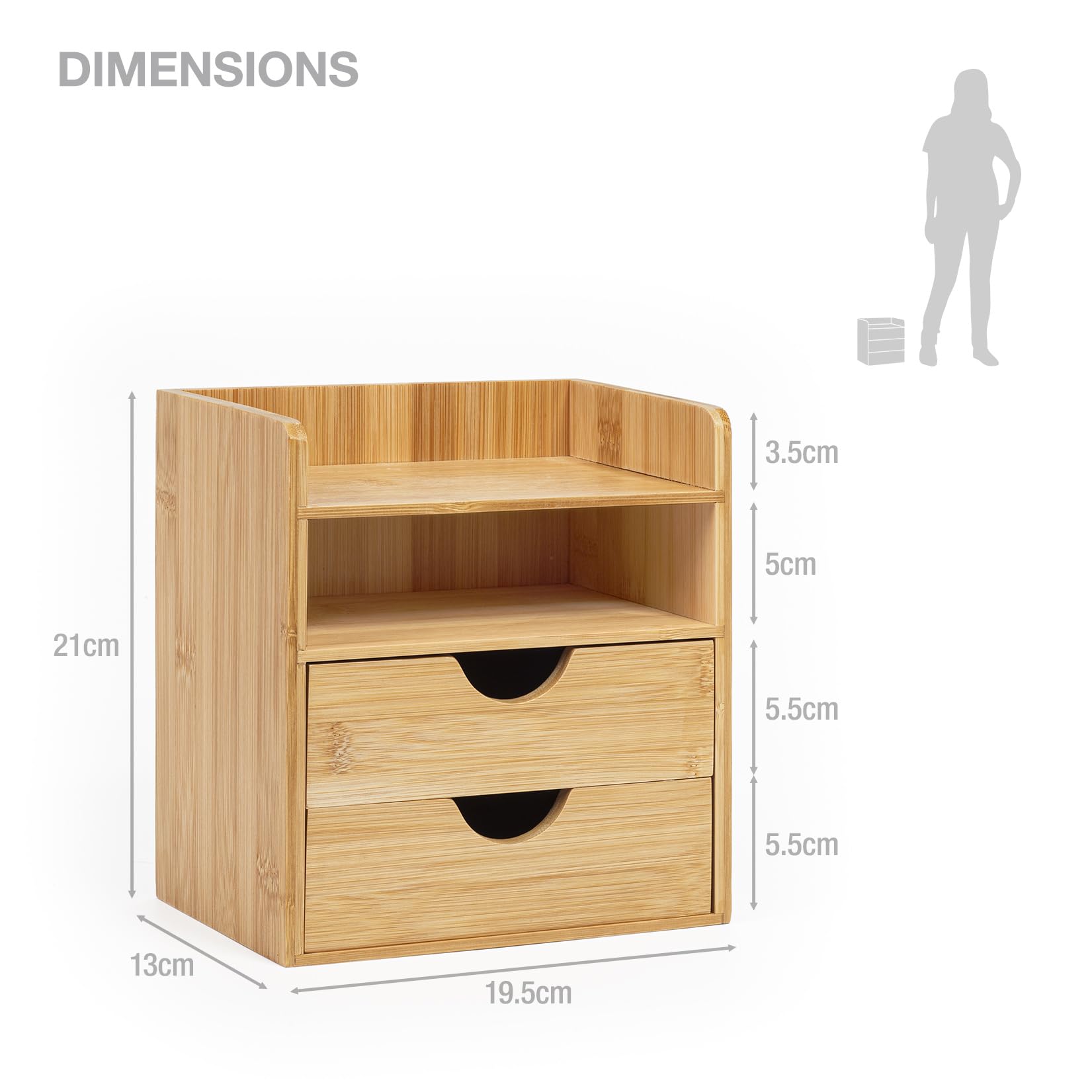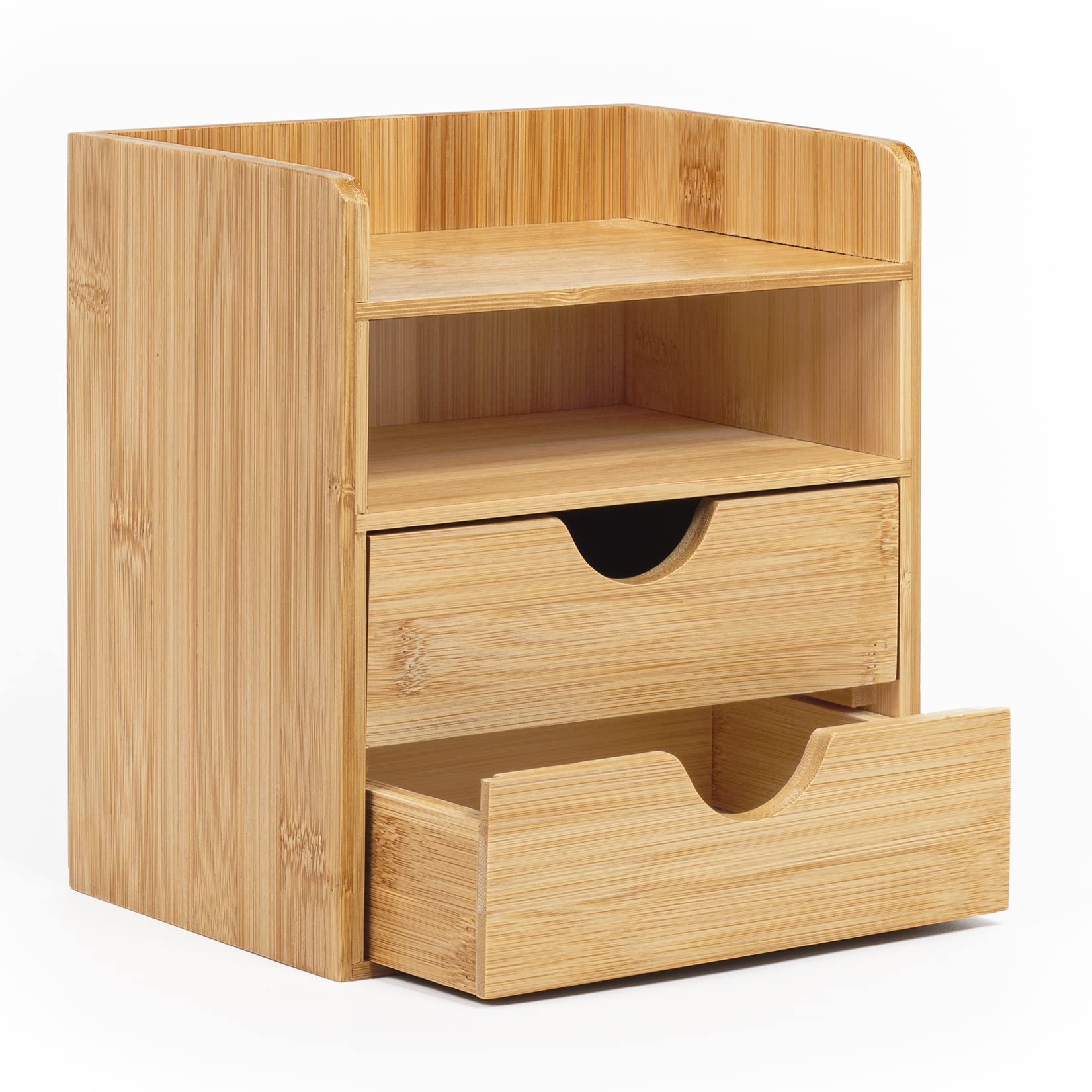 - woodluv Desktop Organiser With 2 Drawers, Mini Shelf Storage Box