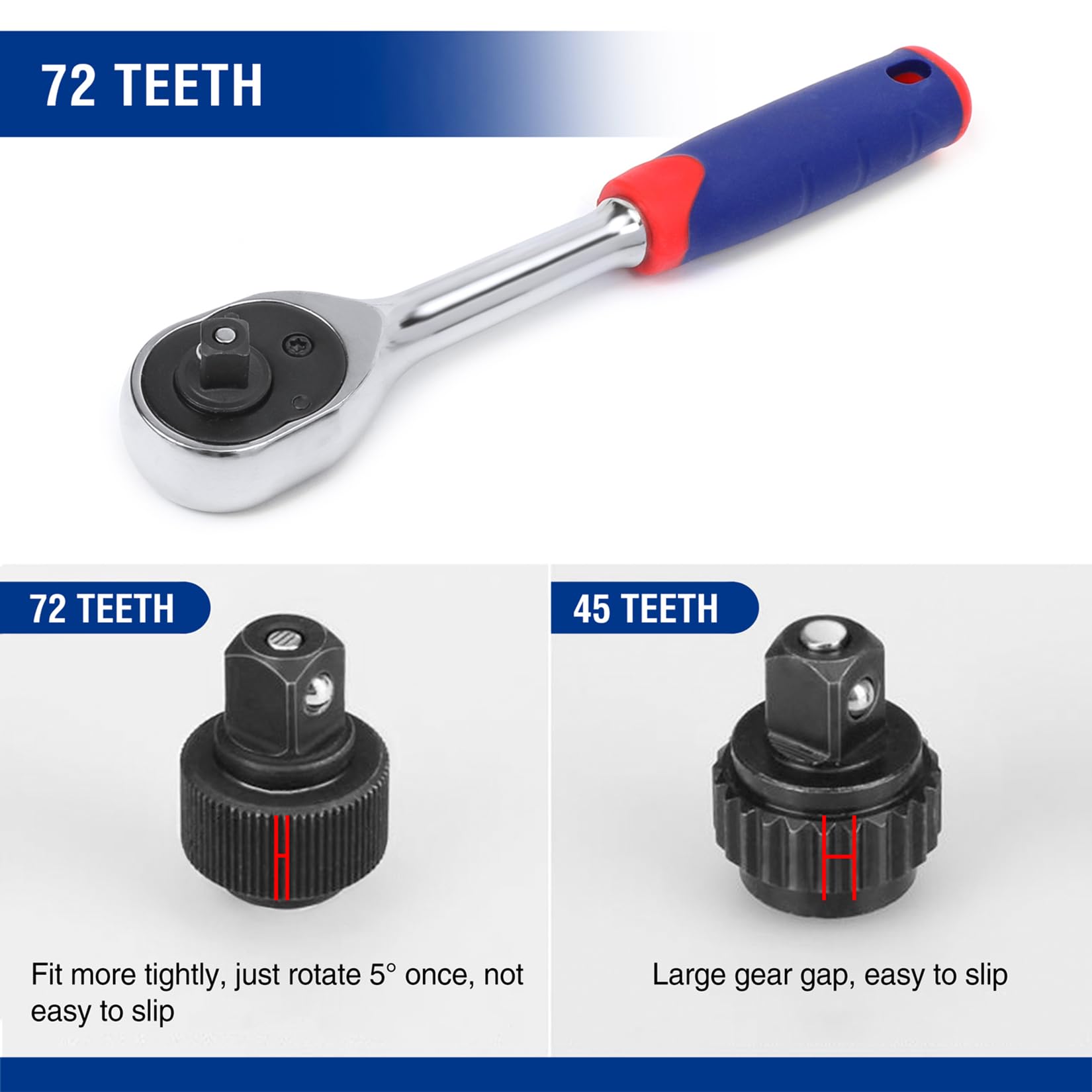 - Top Pick by Top Dad: Perfect for DIY dads, this set includes a reversible ratchet with 72 teeth, providing maximum leverage for easy tightening and loosening in confined spaces.