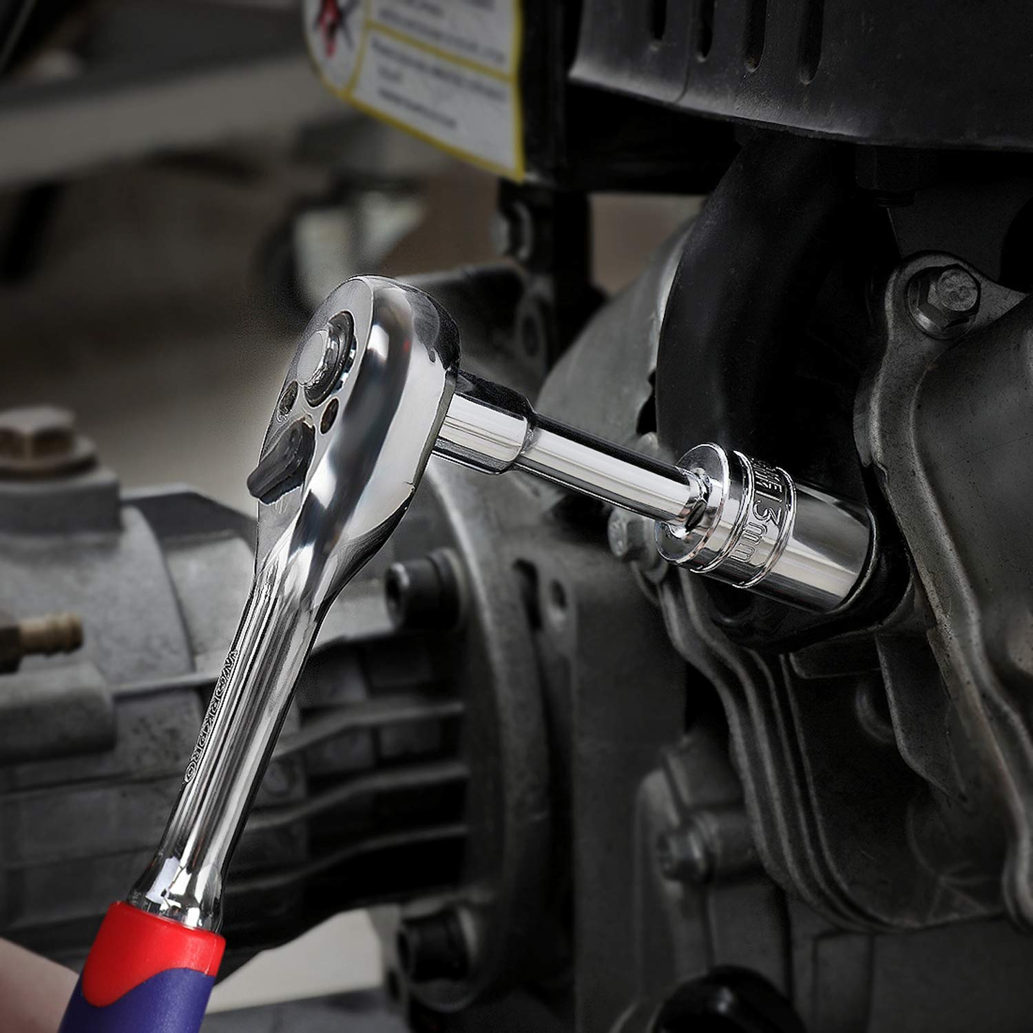 - Quick-Release Mechanism: The push-button release allows for easy and quick swapping of the ratchet and sockets, helping you work faster and more efficiently without interruptions.