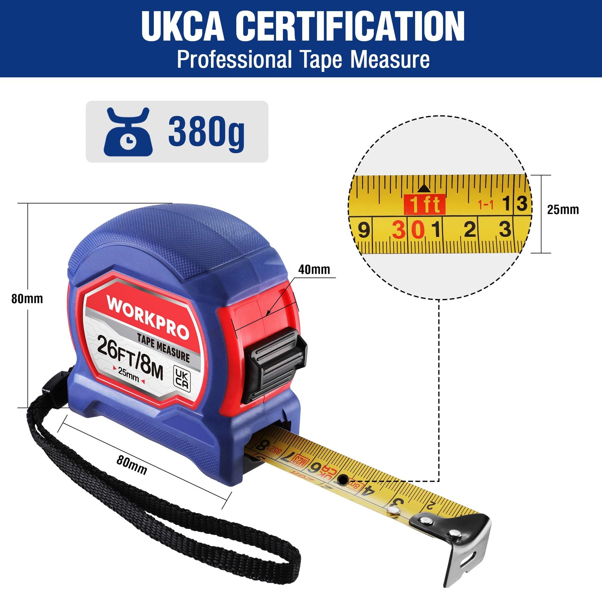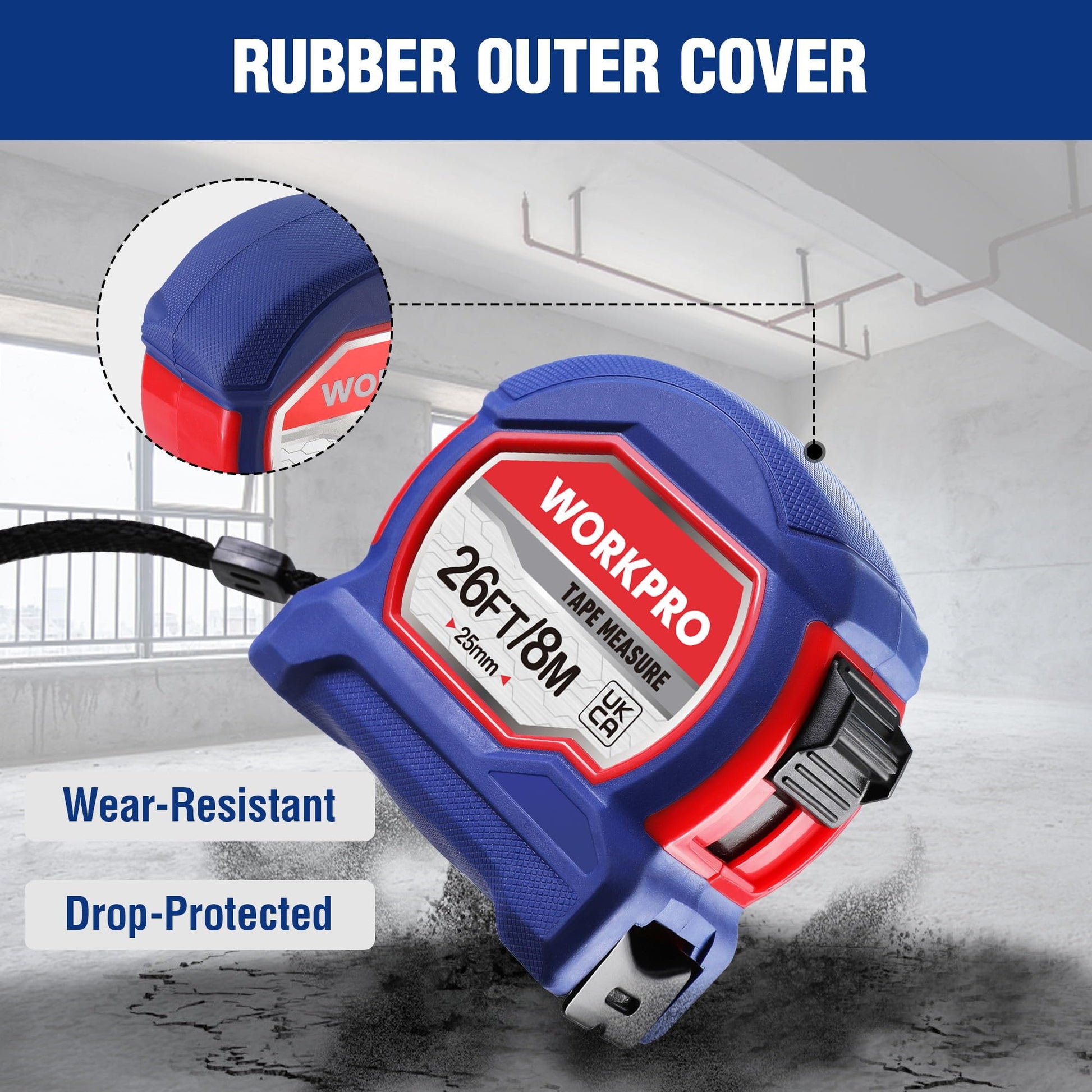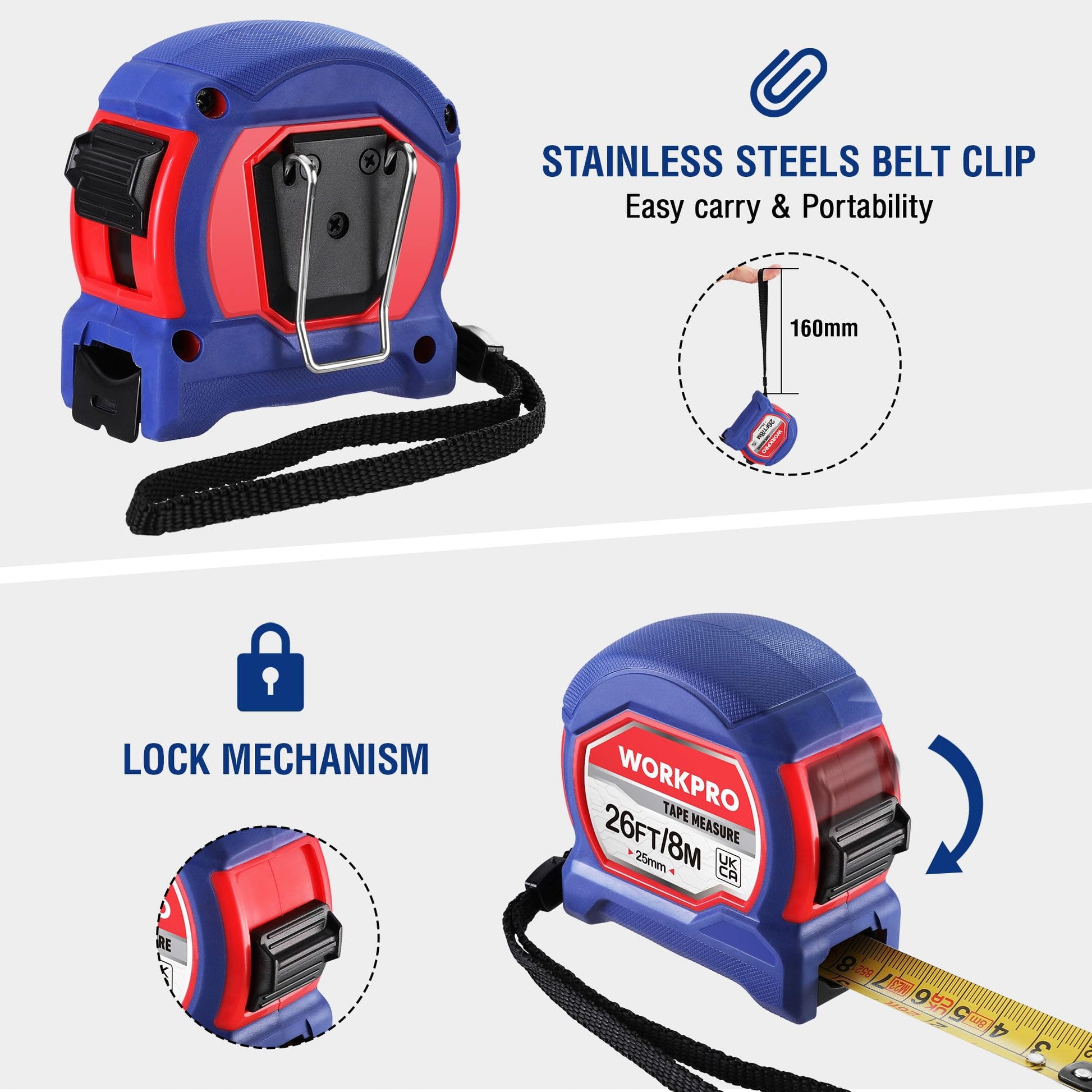 - WORKPRO Tape Measure 8M 26FT, Retractable Professional Measuring Tape