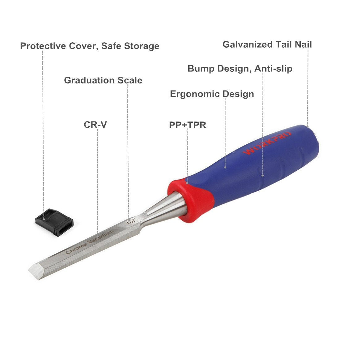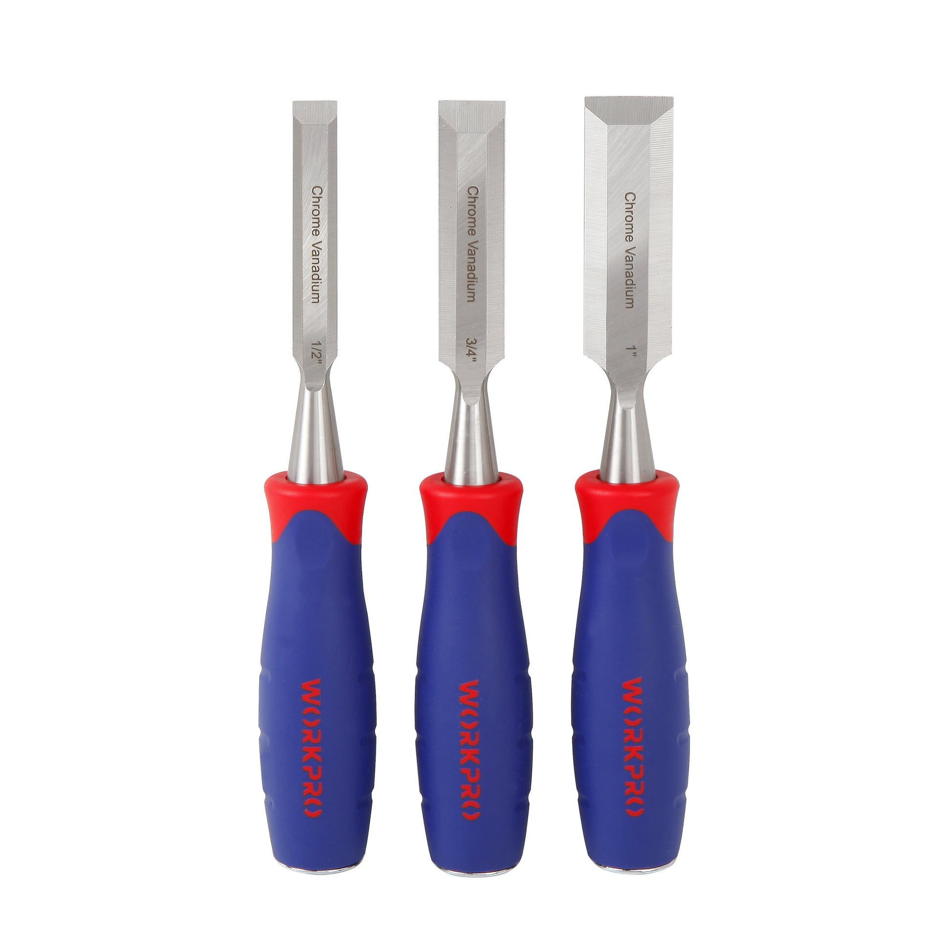 - WORKPRO Wood Chisel Set, 3 Pieces Wood Carving Chisels 12 mm, 19 mm, 25 mm, Cr-V Bevel Edge Chisels with Steel Hammer End and Non Slip Handle