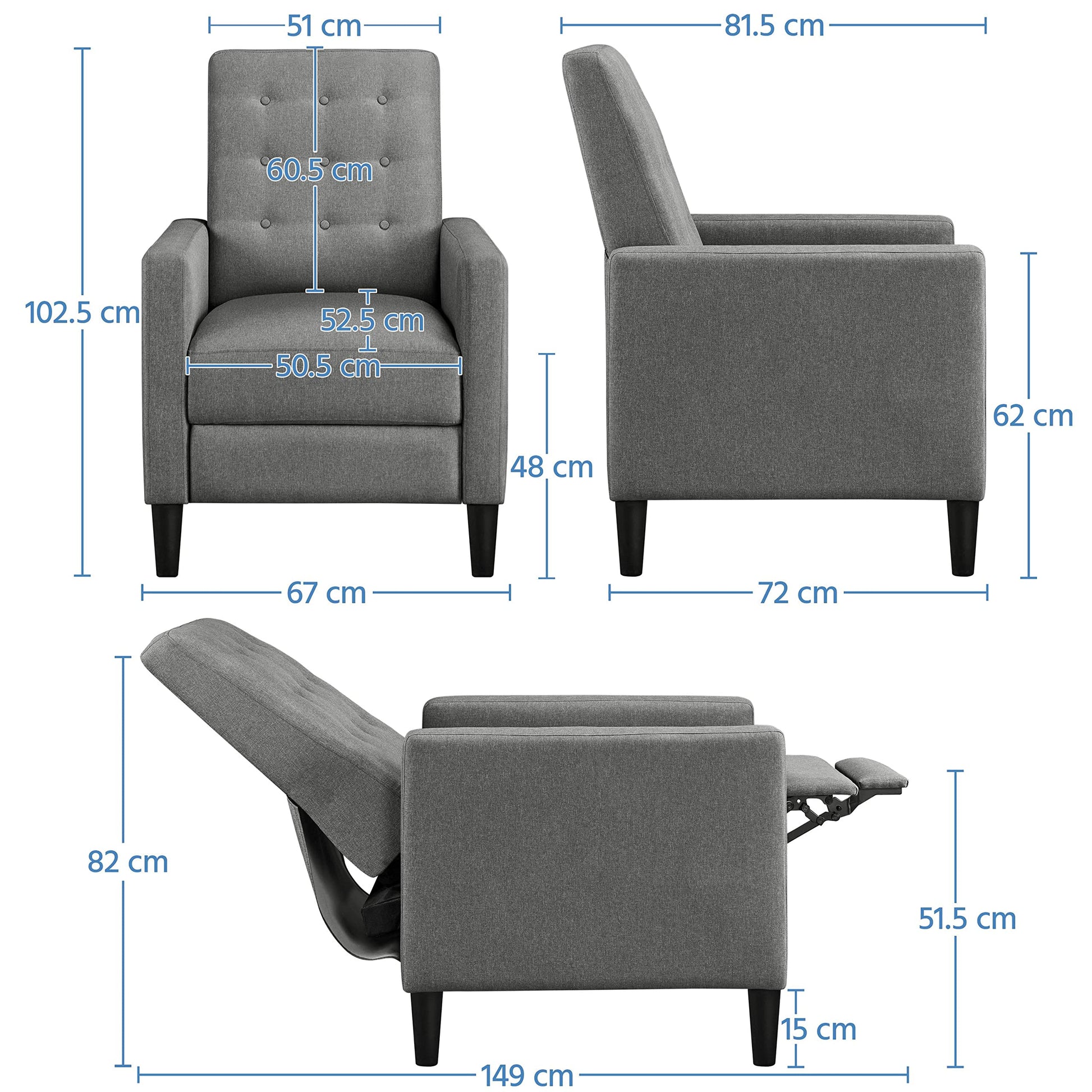 - Yaheetech Grey Modern Recliner Chair Adjustable Reclining Armchair Upholstered Sofa Couch.