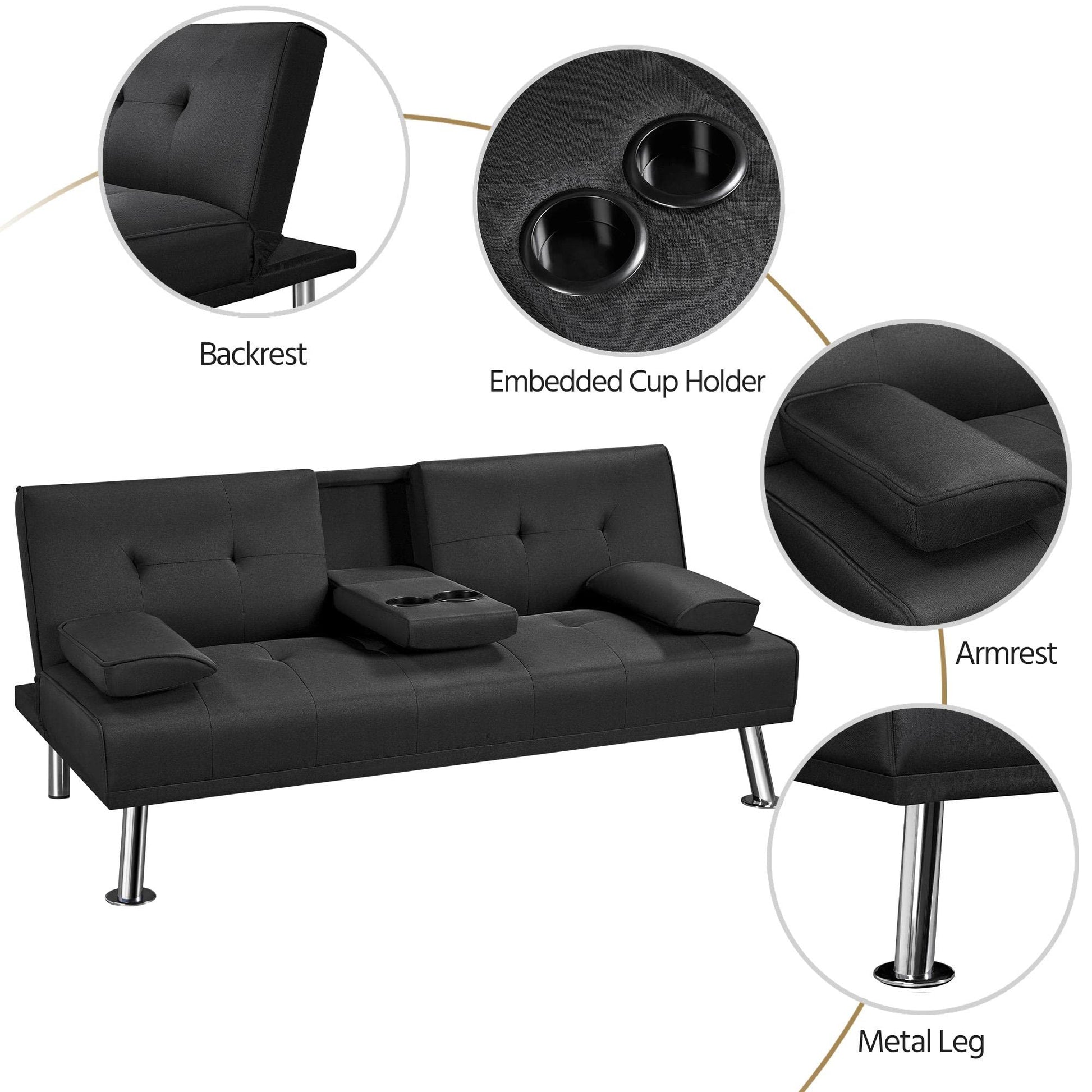 - Yaheetech Sofa Bed,Fabric Click Clack Sofa Bed with 2 Cup Holders, Convertible Bed Settee.