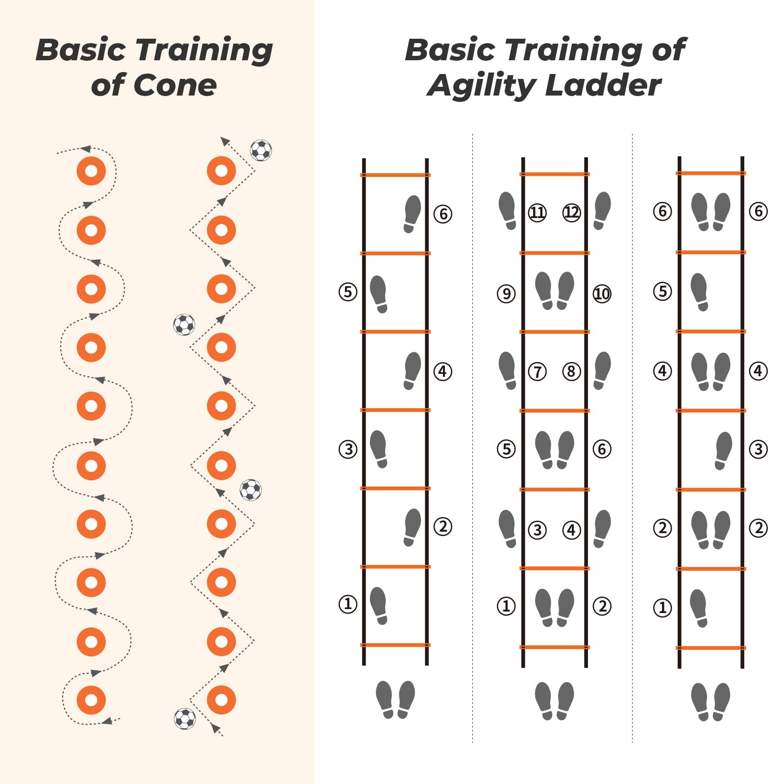 - Stability: Ensure the steel stakes are properly secured to prevent the agility ladder and cones from shifting during use.