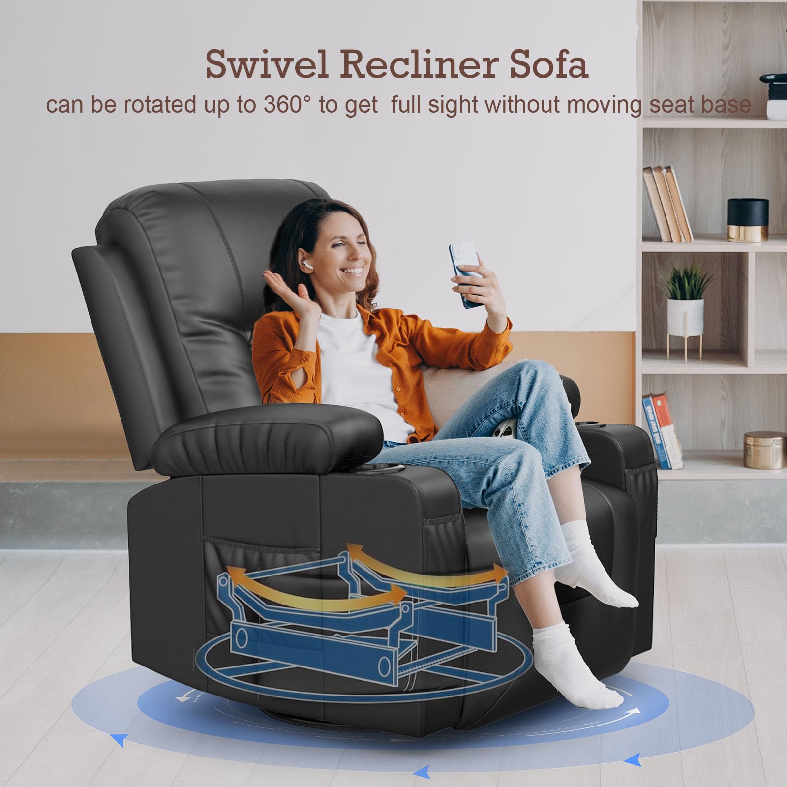 - YONISEE Recliner Chair, Swivel Recliner Rocker Chairs with 360° Rotate & 125° Rocking Mechanism, Extended Footrest, Swivel Armchair Single Sofa Living Room Lounge with Drink Holders & Side Pockets