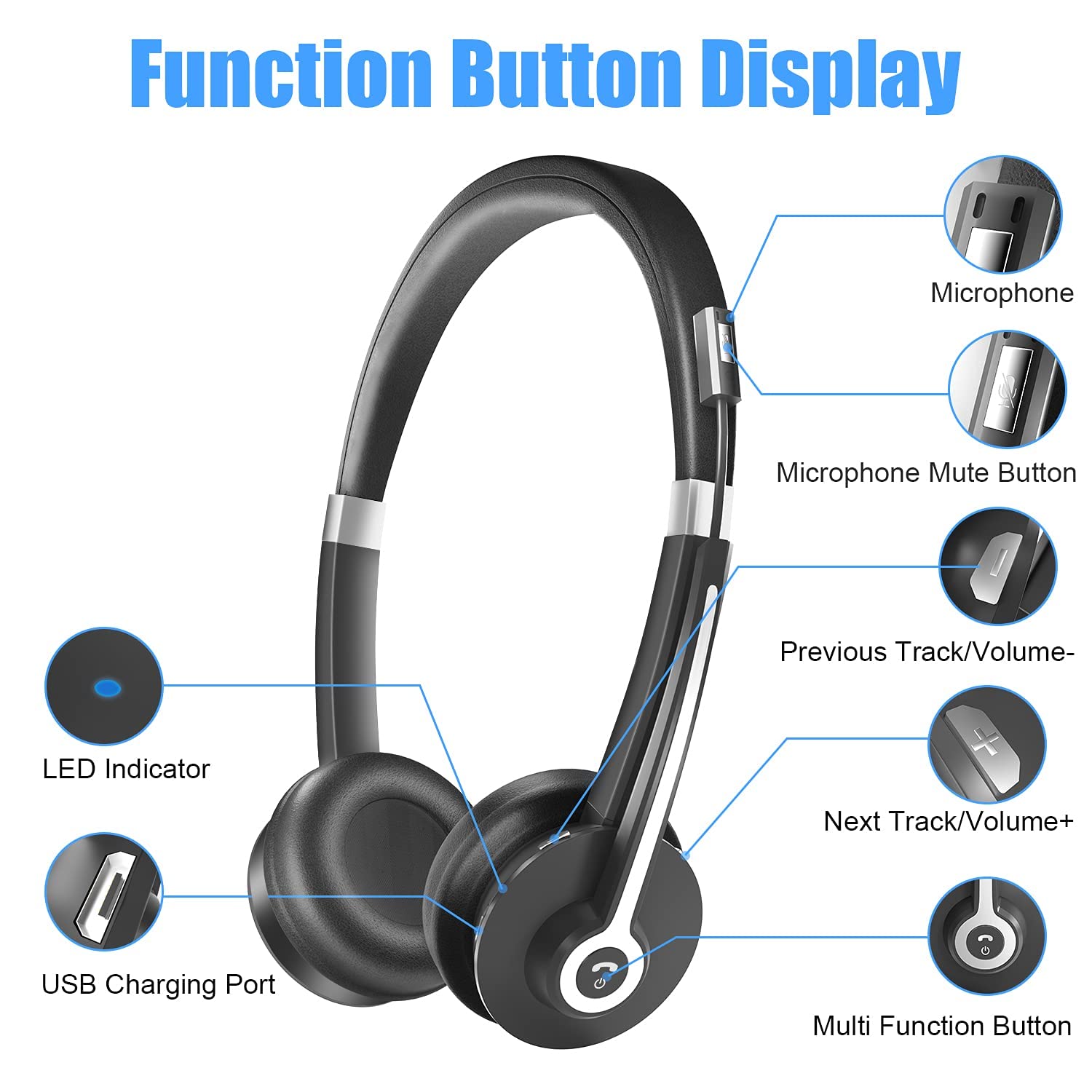 - YUWAKAYI Bluetooth Headset with Noise Canceling Microphone, V5.0, Mic Mute, Wireless Headphone for Laptop, Cell Phone, Tablet, Call Center, Office, Meeting,Online Class