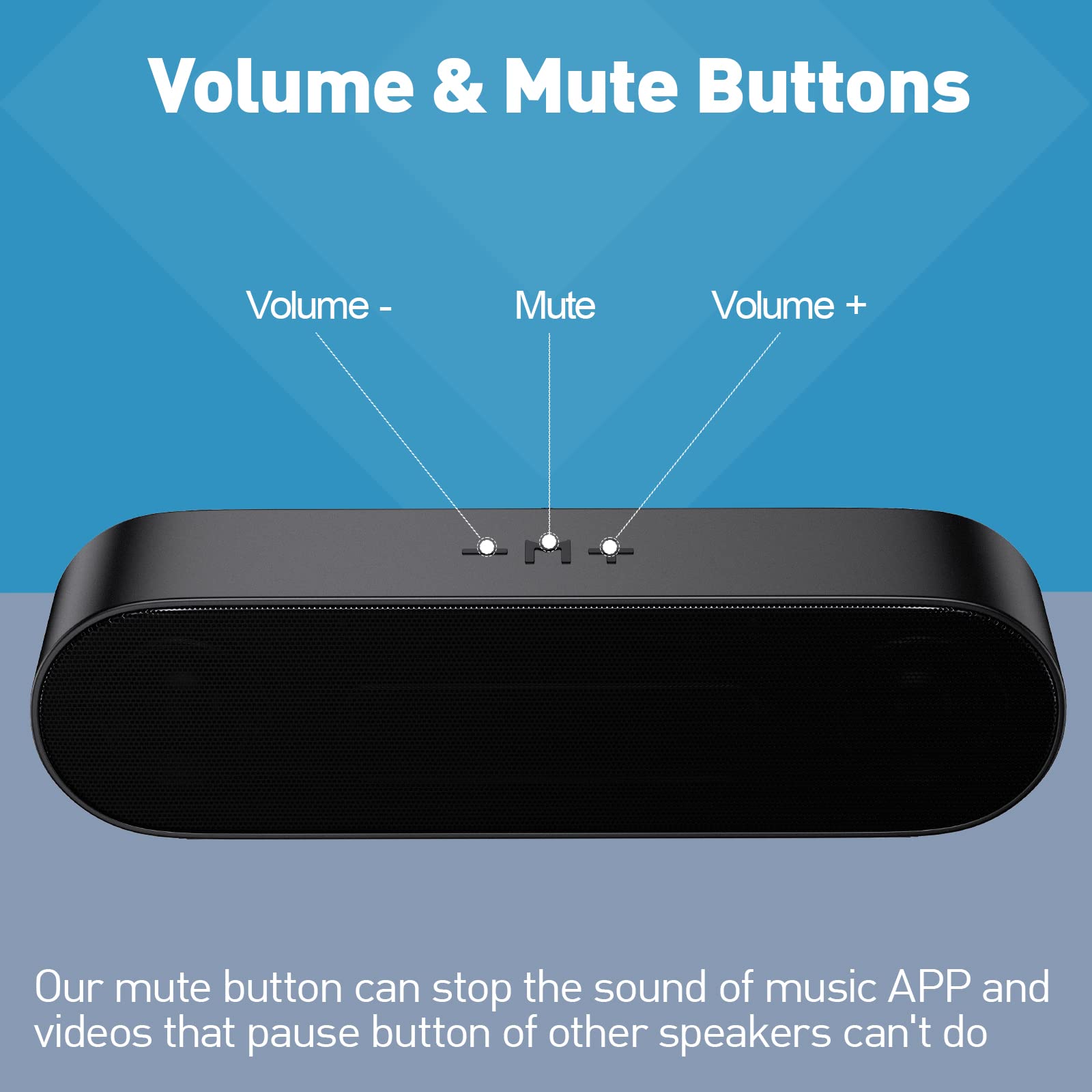 - Volume Control Buttons: Unlike traditional speakers, this soundbar features 3 built-in buttons (Volume+, Volume-, Mute) for easy, instant volume adjustments. The mute button allows you to pause sound without interrupting other tasks or activities.