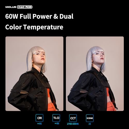 - Effortless Visual Masterpieces: With 15 scene options and music mode, the MOLUS X60 lets you create stunning visuals that respond to sound, adding an extra layer of creativity to your shoots.