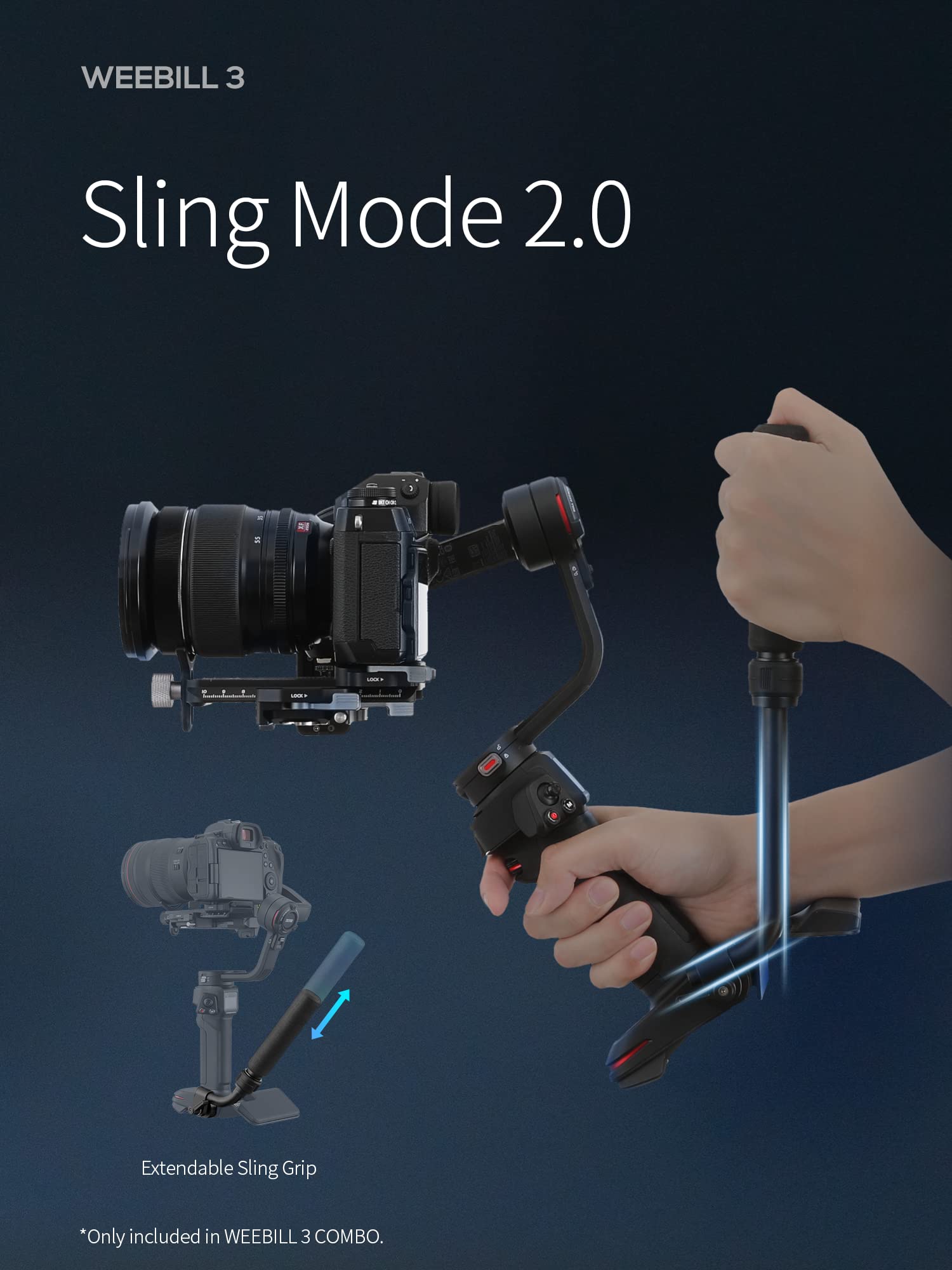 - ZHIYUN Weebill 3 Combo [Official] Gimbal Stabilizer for DSLR & Mirrorless Camera with Sling Mode 2.0, Wrist Rest, Built-in Fill Light, Mic, Backpack, Tripod