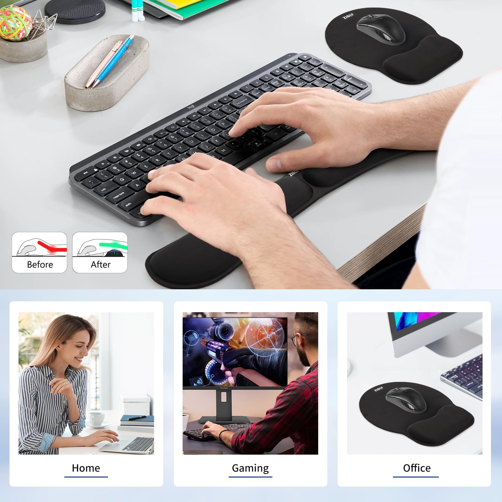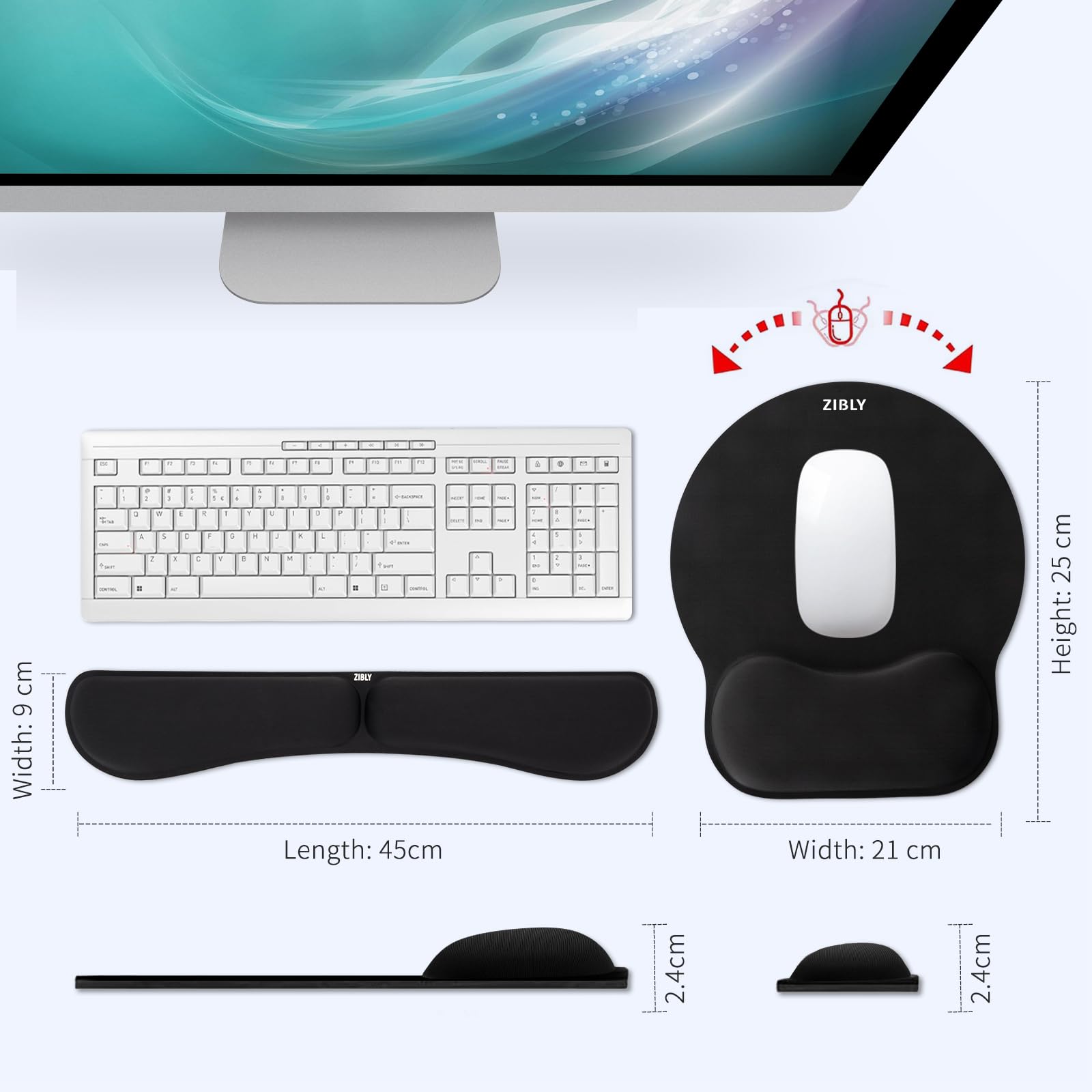 - ZIBLY Keyboard wrist rest and Mouse mat wrist support, Comfortable Memory Foam Mouse pad wrist support cushion with Anti-Slip Grip for Office Computer Laptop Working Gaming