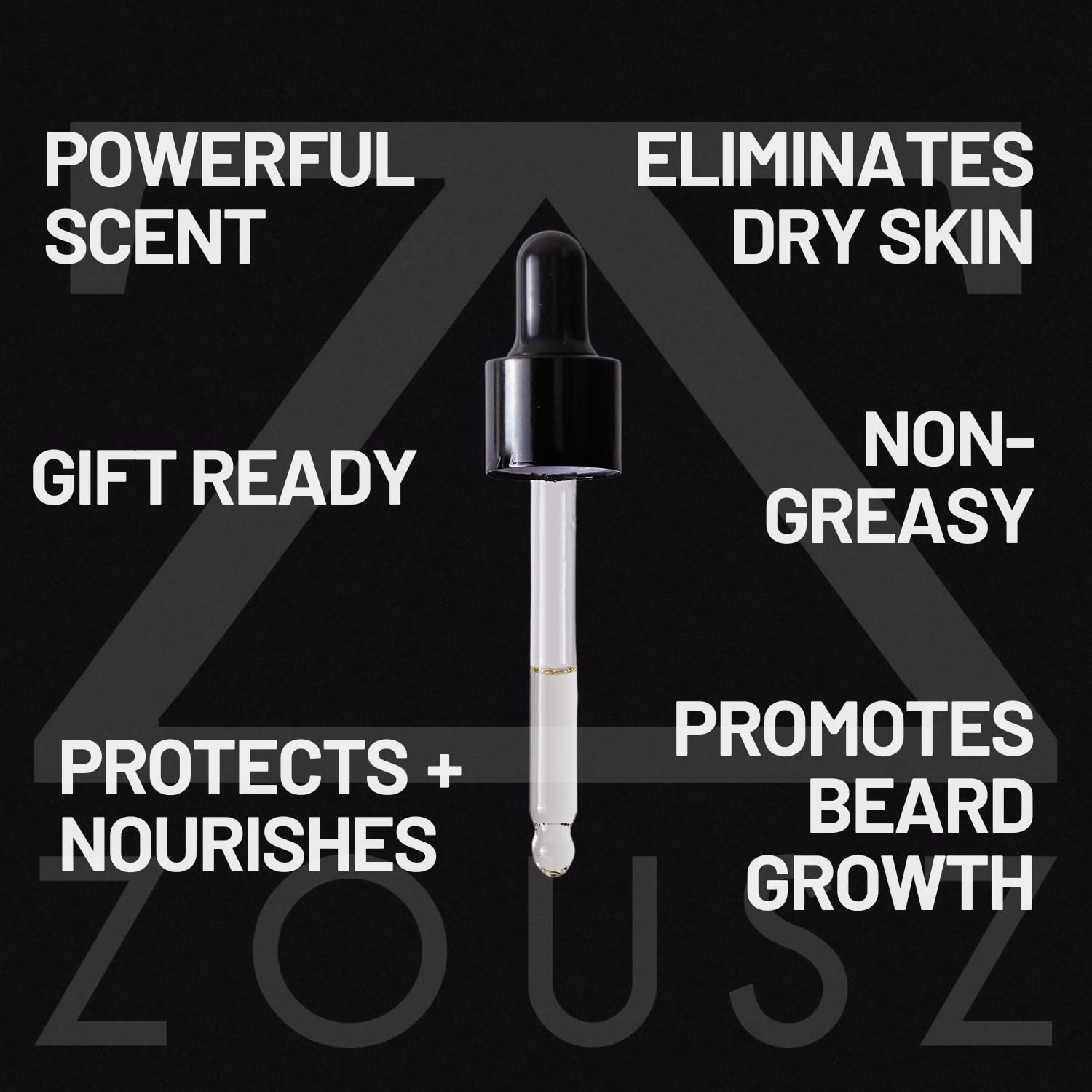 - ZOUSZ Beard Oil For Men - Black Oud & Sandalwood Scent, Beard Growth & Conditioning With Natural & Organic Essential Oils